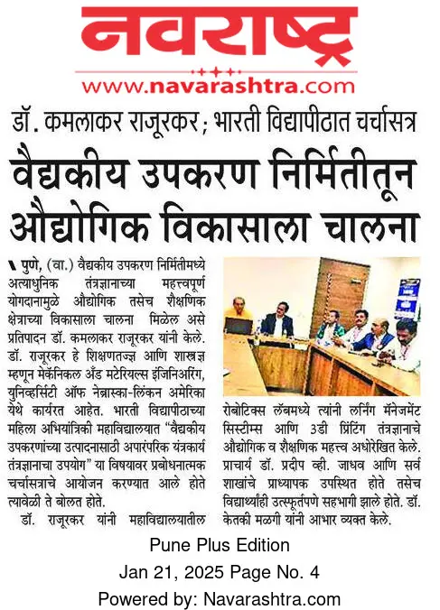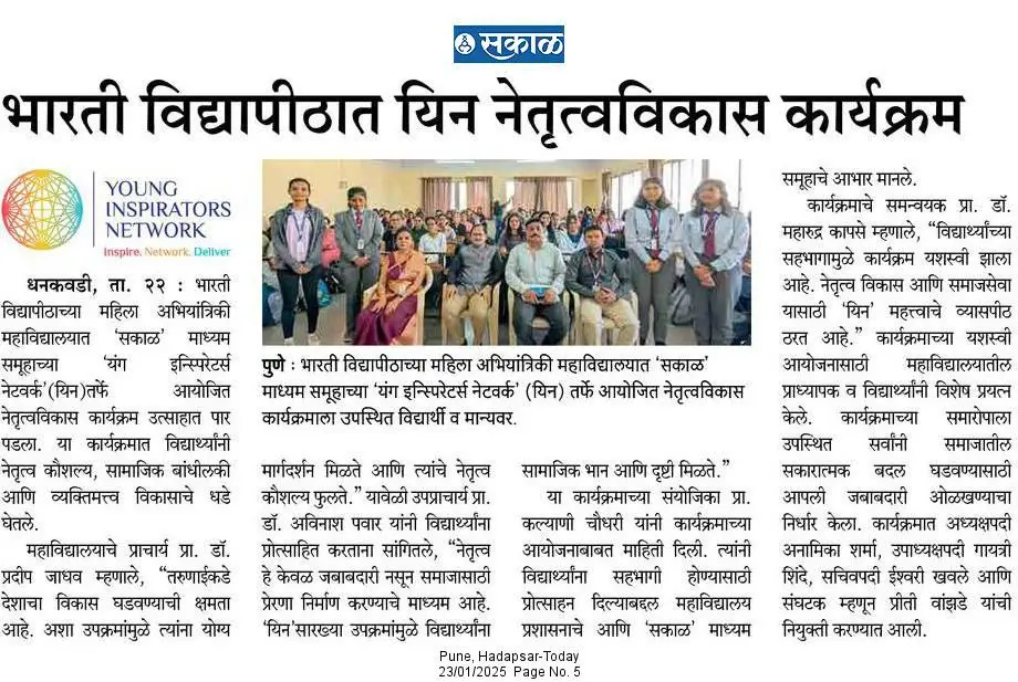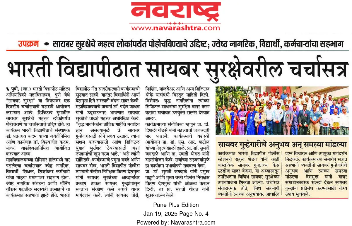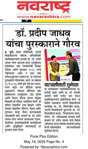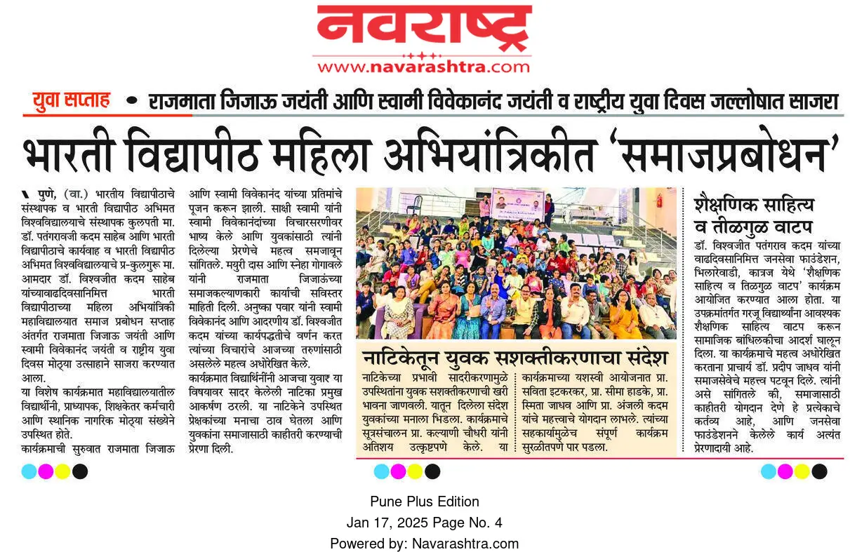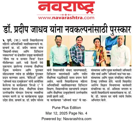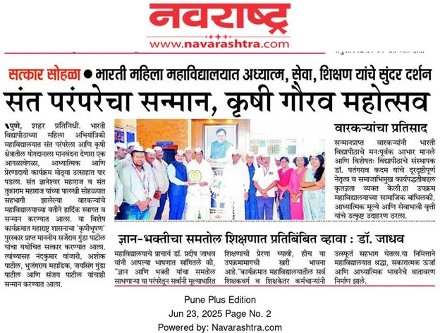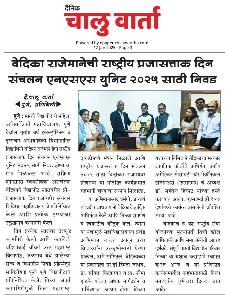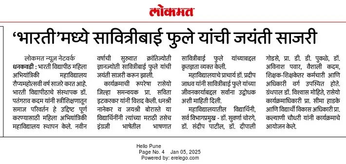 Bharati Vidyapeeth’s College of Engineering for Women was established in June 2000, with the collective efforts of experts having long and outstanding academic experience in the field of professional education with the mission 'Social transformation through dynamic education.