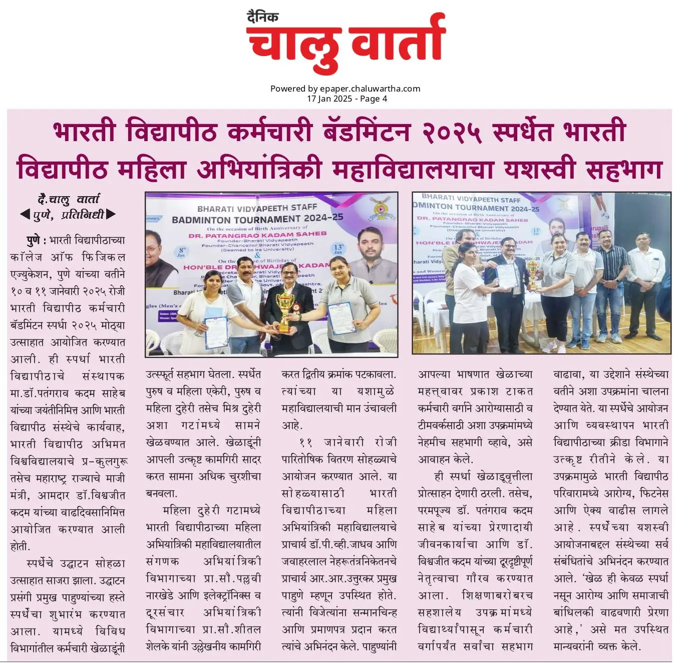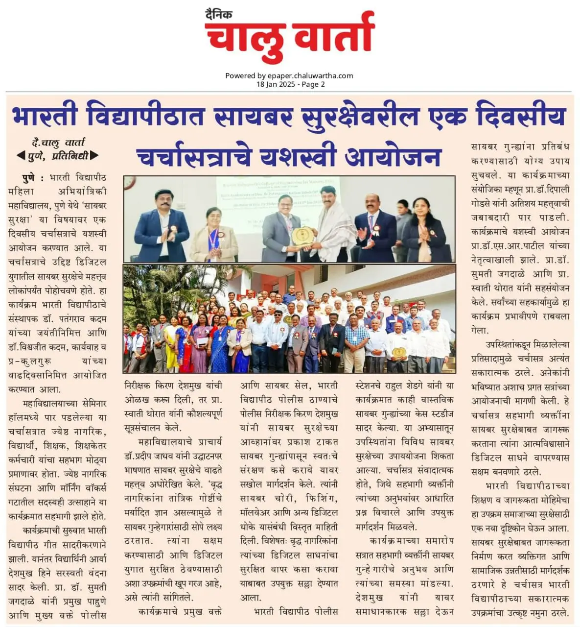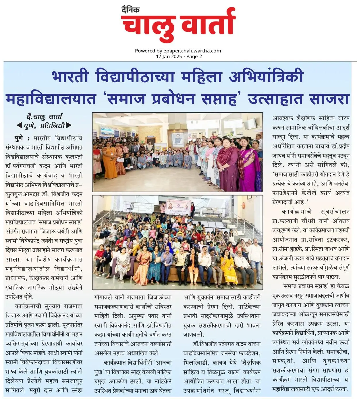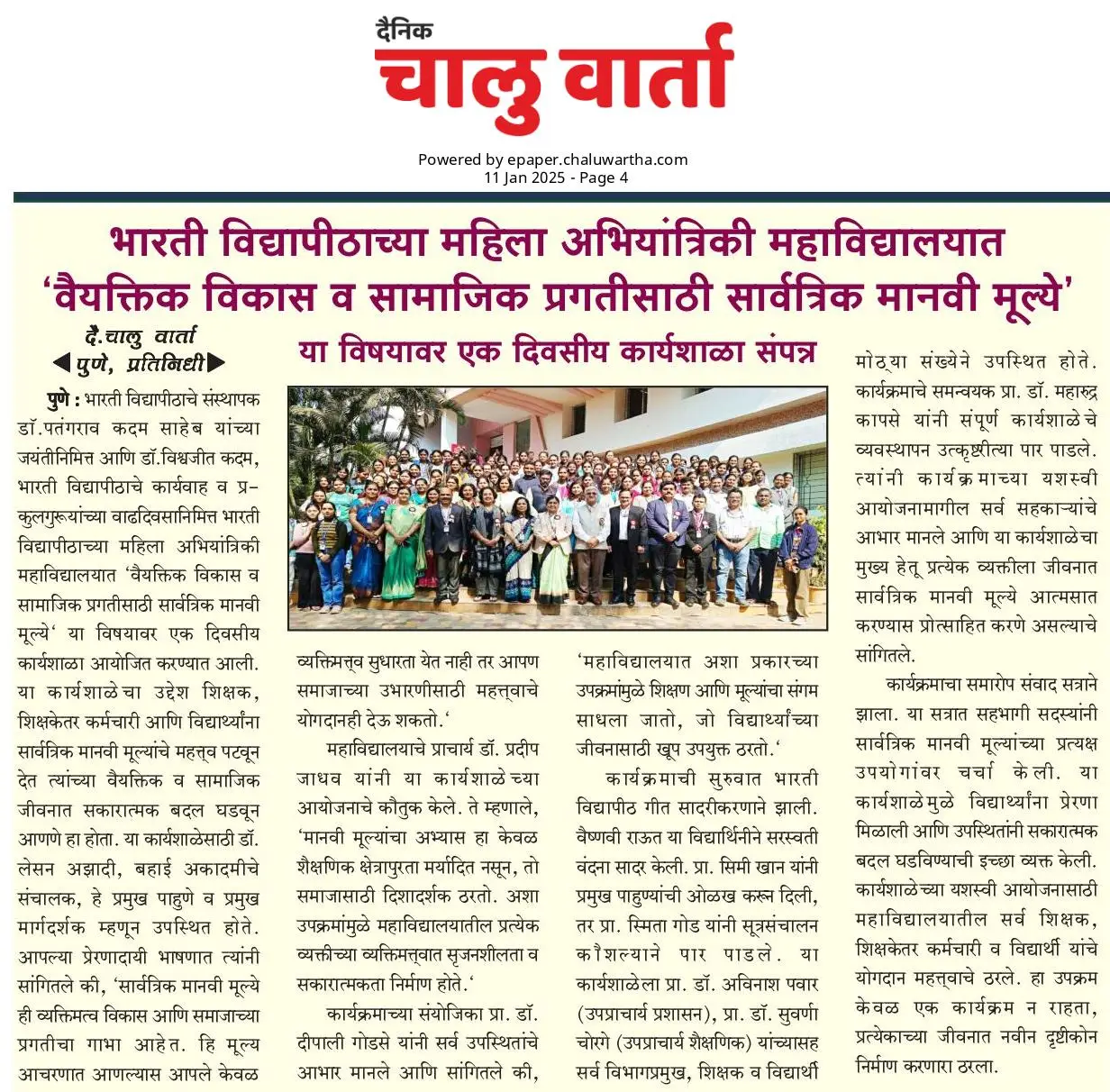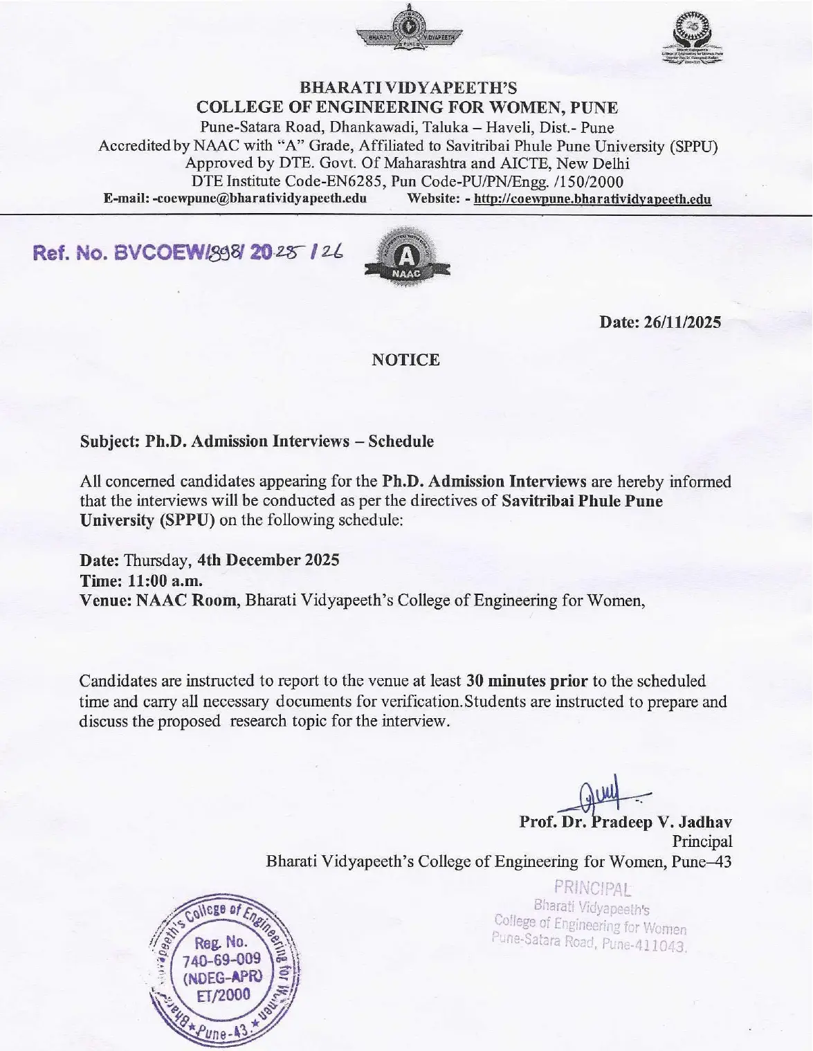 Bharati Vidyapeeth’s College of Engineering for Women was established in June 2000, with the collective efforts of experts having long and outstanding academic experience in the field of professional education with the mission 'Social transformation through dynamic education.